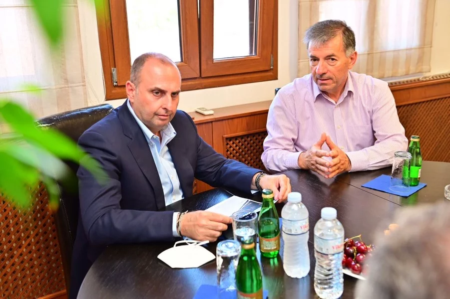Παράλληλα, ο Υφυπουργός Υποδομών και Μεταφορών κος Γιώργος Καραγιάννης πραγματοποίησε επίσκεψη στις εγκαταστάσεις της εταιρείας Solegron στο Αμύνταιο, συναντήθηκε με τα μέλη της ΔΗΜΤΟ Αμύνταιου της ΝΔ, επισκέφθηκε το Δημαρχείο Αμύνταιου όπου και συναντήθηκε με τον Δήμαρχο κο. Άνθιμο Μπιτάκη, συναντήθηκε με εκπροσώπους αγροτικών συνεταιρισμών της περιοχής αλλά και με μέλη του Δ.Σ. του Εμπορικού Συλλόγου. Στις δηλώσεις του ο ίδιος τόνισε: «Στην περιοδεία μας στον νομό της Φλώρινας είχαμε την ευκαιρία να συναντηθούμε και να συνομιλήσουμε με ανθρώπους γεμάτους όρεξη για δουλειά και όραμα για το μέλλον. Η κυβέρνηση του Κυριάκου Μητσοτάκη στέκεται στο πλευρό τους, εργάζεται καθημερινά για την ευημερία και την προκοπή των τοπικών κοινωνιών και της χώρας. Ως Υπουργείο Υποδομών και Μεταφορών, με τον Κώστα Καραμανλή, στηρίζουμε την εθνική προσπάθεια για σταθερή ανάπτυξη μέσα από ένα συνεκτικό πρόγραμμα παρεμβάσεων που εκτείνεται σε όλη την Ελλάδα. Ειδικά στη Φλώρινα υλοποιούμε ένα ευρύ φάσμα έργων. Ενδεικτικά, προχωρήσαμε το μεγάλο έργο για την πρώτη φάση των Αρδευτικών Δικτύων του Φράγματος Τριανταφυλλιάς με προϋπολογισμό 44 εκατομμυρίων € και σύντομα θα υπογραφεί η σχετική σύμβαση. Ταυτόχρονα θα δημοπρατήσουμε άμεσα και νέο έργο ύψους 20 εκατομμυρίων περίπου για την ύδρευση της πόλης από το Φράγμα. Για τον οδικό άξονα Πτολεμαΐδα – Φλώρινα εργαζόμαστε ώστε να το δημοπρατήσουμε στα τέλη του 2023. Στα σιδηροδρομικά, το δίκτυο του Νομού εντάσσεται στο μεγάλο ΣΔΙΤ ανάταξης του δικτύου με προϋπολογισμό 270 εκατομμύρια €, ενώ μελετάμε και τις νέες συνδέσεις με τους βόρειους γείτονες μας. Στο Υπουργείο Υποδομών και Μεταφορών είμαστε βέβαιοι ότι όταν υπάρχει πολιτική βούληση, σωστός σχεδιασμός και στενή επίβλεψη οι στόχοι επιτυγχάνονται και τα έργα γίνονται πραγματικότητα. Με αυτόν τον τρόπο συνεχίζουμε».