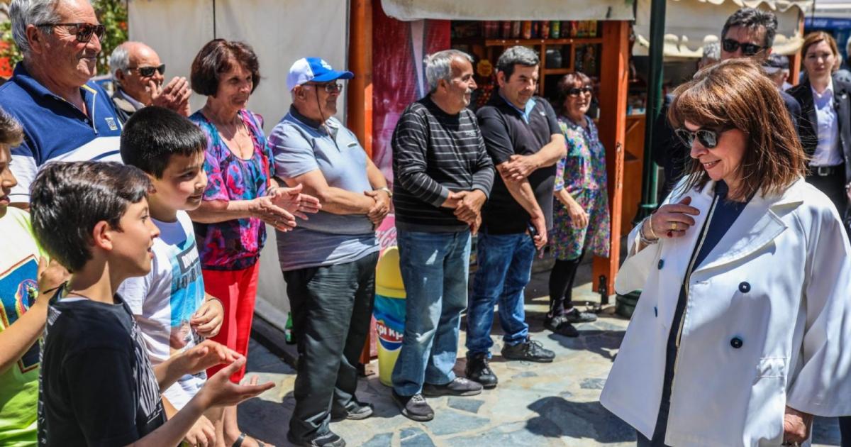 Ιδιαίτερα θερμή υποδοχή, με παραδοσιακές μαντινάδες, επεφύλαξαν οι κάτοικοι της ακριτικής Χάλκης στην κυρία Σακελλαροπούλου, η οποία πραγματοποιεί διήμερη επίσκεψη σε Χάλκη, Τήλο και Σύμη, στο πλαίσιο της οποίας θα παραστεί στις εκδηλώσεις του Δήμου Σύμης, για τον εορτασμό της 77ης επετείου της 8ης Μαΐου 1945, ημέρα υπογραφής του πρωτοκόλλου παραδόσεως των στρατευμάτων κατοχής Δωδεκανήσου στις συμμαχικές δυνάμεις.