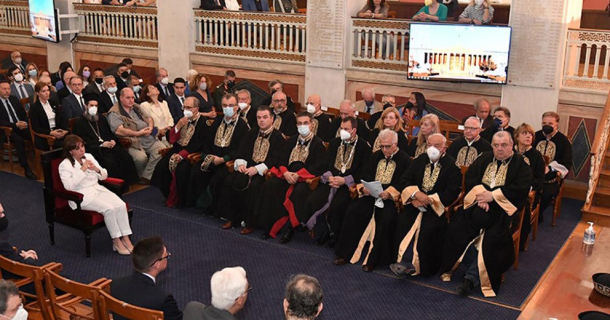 Επίτιμη Διδάκτορας του Τμήματος Πολιτικής Επιστήμης και Δημόσιας Διοίκησης της Σχολής Οικονομικών και Πολιτικών Επιστημών του Πανεπιστημίου Αθηνών αναγορεύθηκε την Πέμπτη 16 Ιουνίου 2022 η Πρόεδρος της Δημοκρατίας Κατερίνα Σακελλαροπούλου.