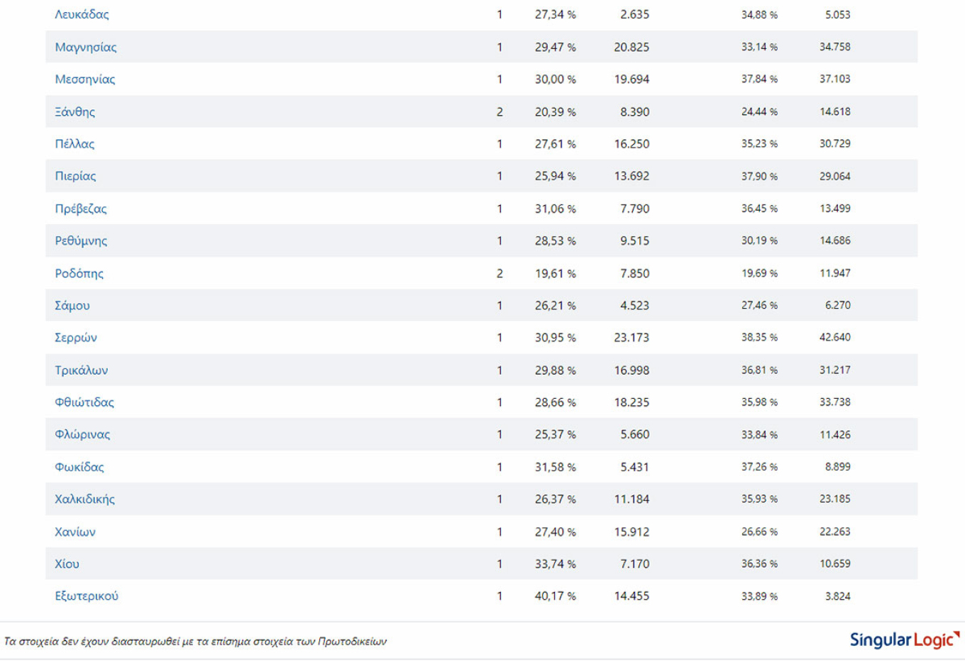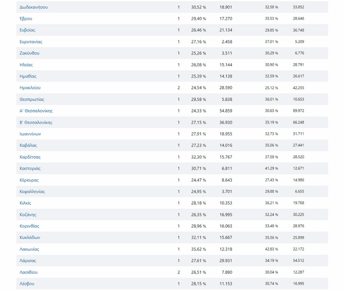 Ποσοστά πάνω από 30% έλαβε σε άλλες 13 εκλογικές περιφέρειες, με τις υψηλότερες επιδόσεις να καταγράφονται στον Βόρειο Τομέα Αθηνών, στη Χίο, στην Ανατολική Αττική, την Καρδίτσα και την Α’ Πειραιώς.