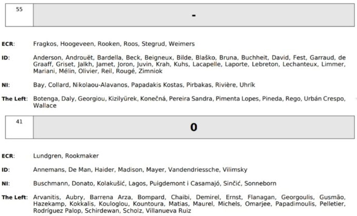Πιο συγκεκριμένα, οι ευρωβουλευτές του ΣΥΡΙΖΑ – Προοδευτική Συμμαχία: Δημήτρης Παπαδημούλης, Στέλιος Κούλογλου, Κώστας Αρβανίτης, Πέτρος Κόκκαλης, Αλέξης Γεωργούλης και Έλενα Κουντουρά απείχαν από την ψήφιση της πρότασης που είχε καταθέσει η Ευρωπαϊκή Επιτροπή, η οποία ωστόσο εγκρίθηκε από την Ολομέλεια με 598 ψήφους υπέρ.