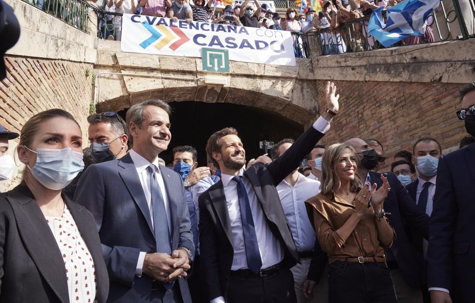 Το πώς βλέπει ο Κασάδο τον Μητσοτάκη δεν φαίνεται ωστόσο από τις επευφημίες προς τον Ελληνα πρωθυπουργό, οι οποίες μπορεί να ήταν και απλώς αποτέλεσμα μεσογειακού ταμπεραμέντου, αλλά από κάτι βαθύτερο και πιο πολιτικό. Το Λαϊκό Κόμμα έχει αντιγράψει την τακτική Μητσοτάκη για να έρθει στην εξουσία, κάτι που ώς τώρα του βγαίνει, καθώς προηγείται με 5 μονάδες στις δημοσκοπήσεις.