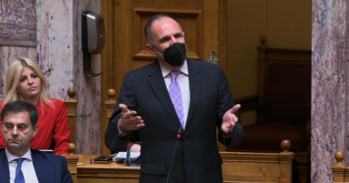 Mε μάσκα εμφανίστηκε σήμερα στη Βουλή ο Γιώργος Γεραπετρίτης αφού βρέθηκε θετικός στην Covid-19 την περασμένη Τρίτη.