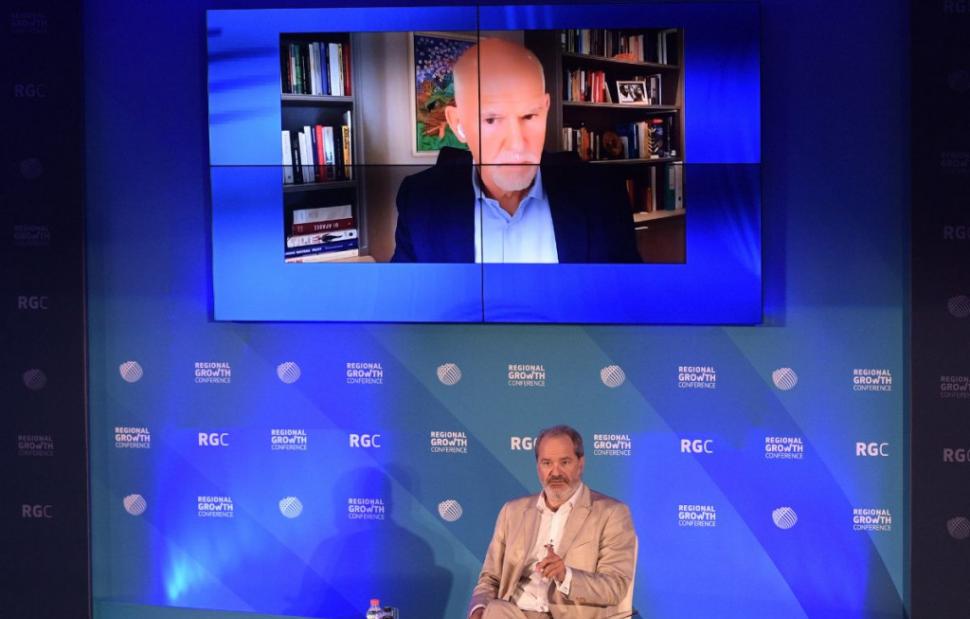 Την πρώτη του εμφάνιση, μετά την επιτυχή επέμβαση τοποθέτησης βηματοδότη, πραγματοποίησε ο πρώην πρωθυπουργός και πρόεδρος της Σοσιαλιστικής Διεθνούς, Γιώργος Παπανδρέου, με παρέμβασή του στο 10ο Regional Growth Conference στην Πάτρα.