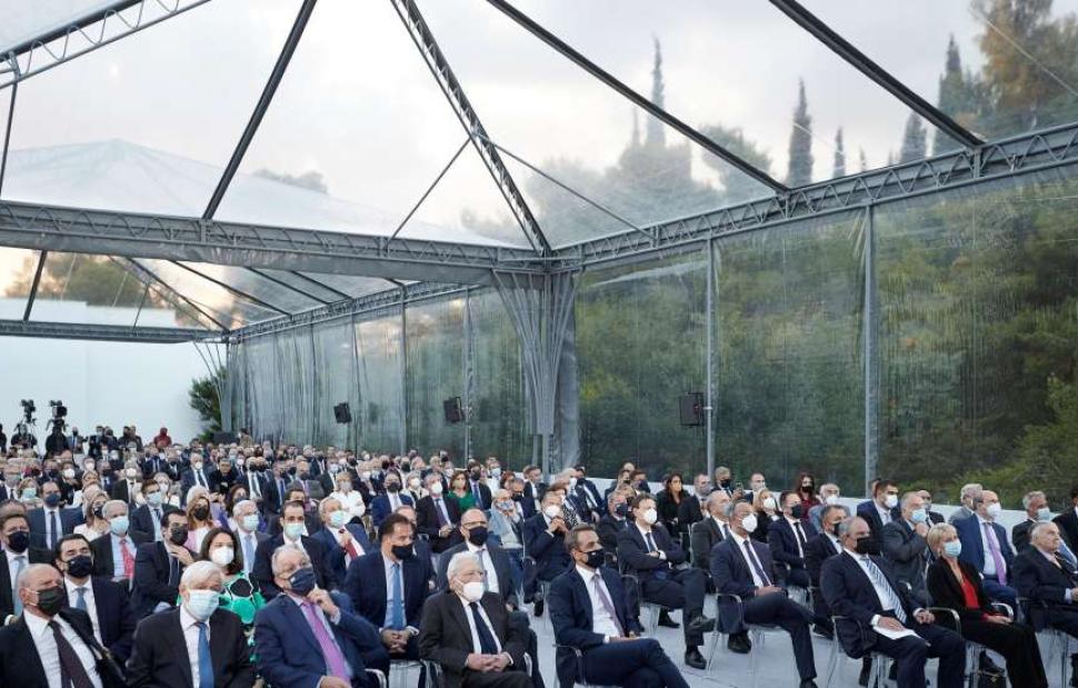 Ωστόσο κάθισε στην πρώτη σειρά, δίπλα στους Δ. Αβραμόπουλο και Αχ. Καραμανλή. Στις ομιλίες τους τον ανέφεραν οι κκ. Μολυβιάτης, Αχ. Καραμανλής και Κώστας Καραμανλής, ενώ ο Πρωθυπουργός είπε ένα γενικό «κύριοι Πρόεδροι».