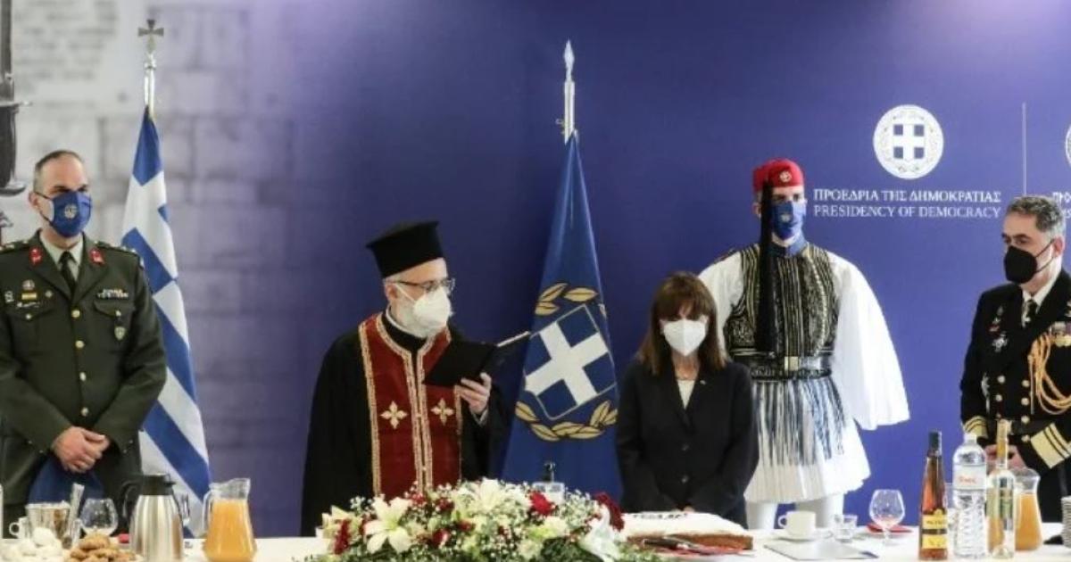 «Με χαρά βρίσκομαι σήμερα ανάμεσά σας, για την κοπή της πρωτοχρονιάτικης πίτας. Η τιμή και η ευθύνη που επωμίζεστε υπηρετώντας στην Προεδρική Φρουρά είναι μεγάλη και ο τρόπος που εκπληρώνετε τα καθήκοντά σας υποδειγματικώς, προκαλώντας την εκτίμηση και τον θαυμασμό όλων μας», ανέφερε απευθυνόμενη στους Εύζωνες και τα στελέχη της Φρουράς και συνέχισε:
