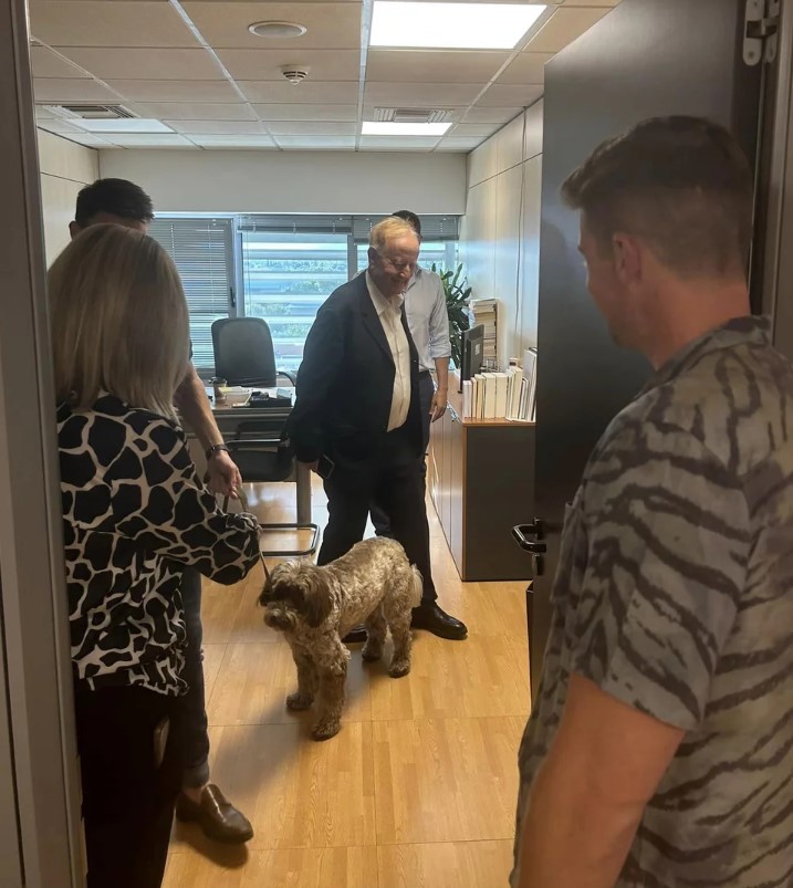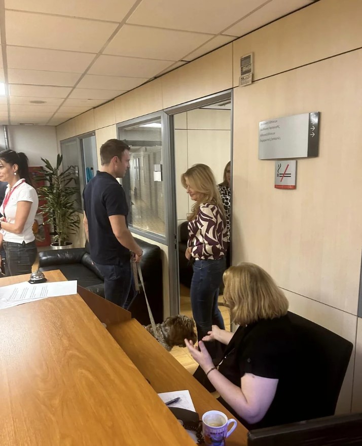 Τον τηλεοπτικό σταθμό Alpha επισκέφτηκε ο νέος πρόεδρος του ΣΥΡΙΖΑ, Στέφανος Κασσελάκης. Μαζί του ήταν ο πατέρας του, ο σύντροφός του Τάιλερ και το σκυλάκι του Φάρλι.