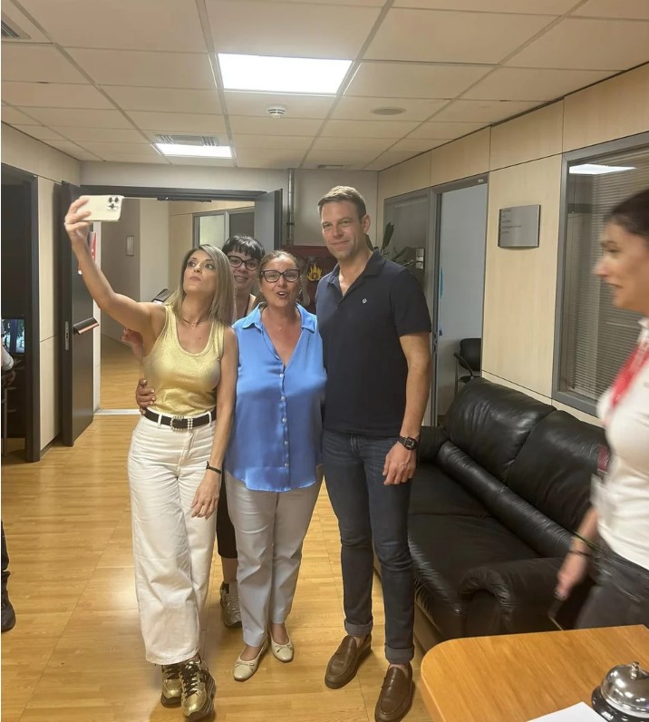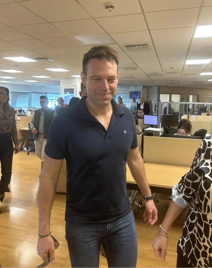 Πηγαίνοντας στον Star για τη συνέντευξη, στα γραφεία στην Κάτω Κηφισιά, ο Στέφανος Κασσελάκης πέρασε από τον Alpha για να χαιρετήσει τους δημοσιογράφους.