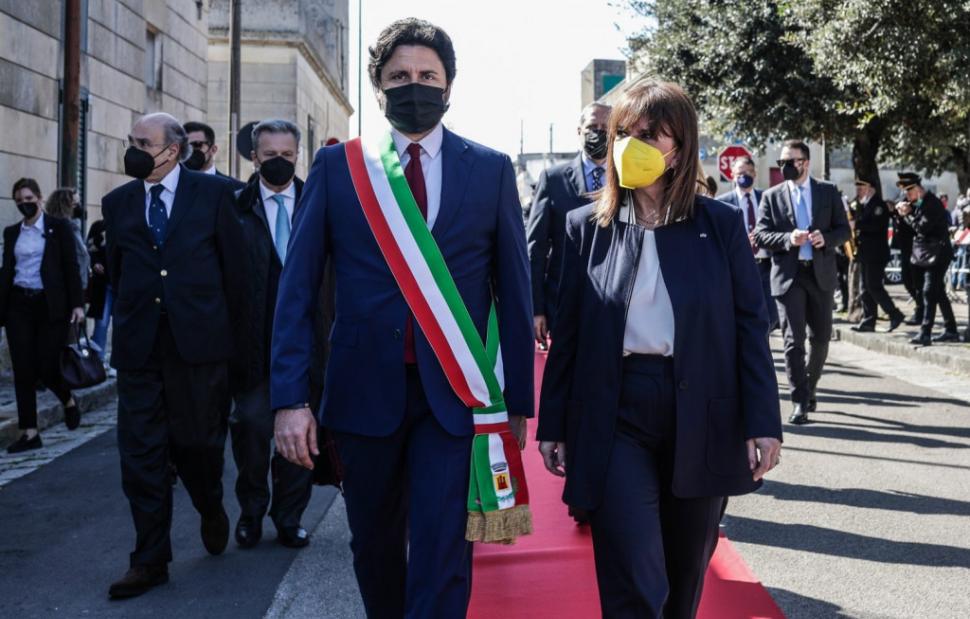 Επίτιμη δημότης της Grecia Salentina ανακηρύχθηκε η Πρόεδρος της Δημοκρατίας, Κατερίνα Σακελλαροπούλου, το βράδυ του Σαββάτου, στο πλαίσιο της επίσκεψής της στα ελληνόφωνα χωριά της Απουλίας, στην περιοχή Σαλέντο της Κάτω Ιταλίας, μετά από πρόσκληση του προέδρου της Ένωσης Ελληνόφωνων Δήμων της Grecia Salentina, Roberto Casaluci, με την ευκαιρία των εορταστικών εκδηλώσεων για την 20ή επέτειο από την ίδρυση της Ένωσης.