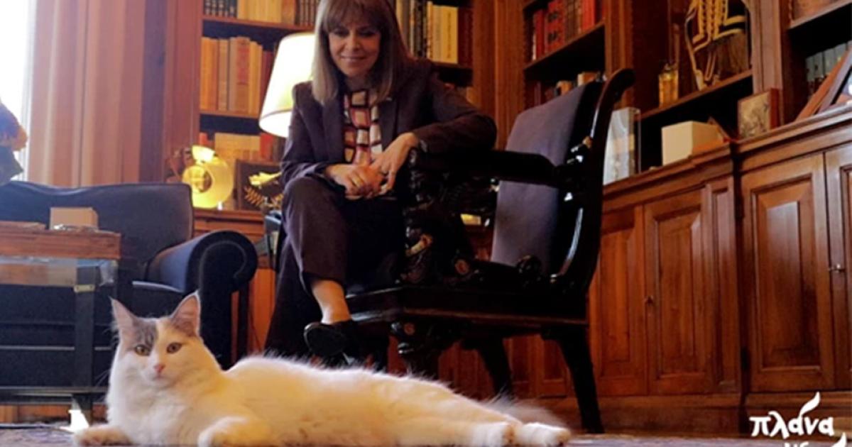 Τώρα, ήρθε η στιγμή η Πρόεδρος της Δημοκρατίας να μάς συστήνει την πρώην αδέσποτη γάτα από την Κάρπαθο που πρόσφατα υιοθέτησε.