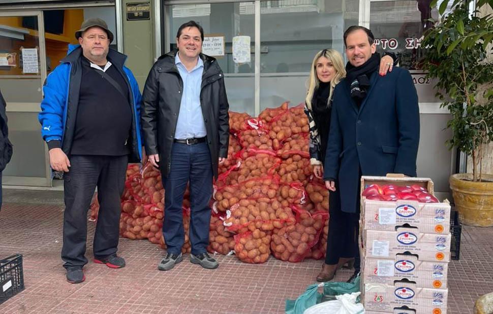 Ο Γραμματέας Αγροτικών Φορέων Ανδρέας Καρασαρίνης, η Γραμματέας Ποιότητας Ζωής και Εθελοντισμού Πίστη Κρυσταλλίδου, ο συντονιστής του Διαγραμματειακού οργάνου Δημήτρης Παπαγγελόπουλος και εργαζόμενοι της ΝΔ διένειμαν τρόφιμα στους εθελοντές της κοινωνικής κουζίνας «Ο Άλλος Άνθρωπος», στη «Δράση για τον άνθρωπο» και στους πωλητές του περιοδικού δρόμου «Σχεδία».
