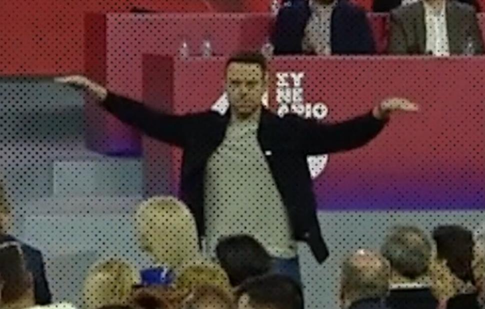 Την ώρα που επικρατούσε ένταση μέσα στην αίθουσα, η κάμερα έπιασε τον πρόεδρο του κόμματος Στέφανο Κασσελάκη να χειρονομεί ζητώντας από το πλήθος να σταματήσει.