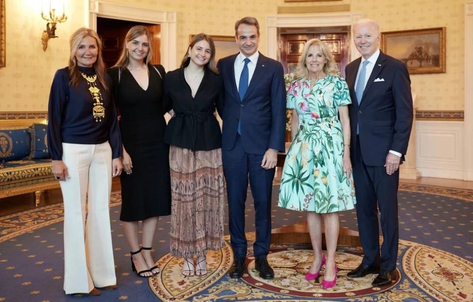 Την ώρα πάντως της συνάντησης του Τζο Μπάιντεν με τον Κυριάκο Μητσοτάκη η Πρώτη Κυρία των ΗΠΑ υποδεχόταν σε άλλο χώρο του Λευκού Οίκου την Μαρέβα Μητσοτάκη την οποία συνόδευαν οι δυο της κόρες, Δάφνη και Σοφία.