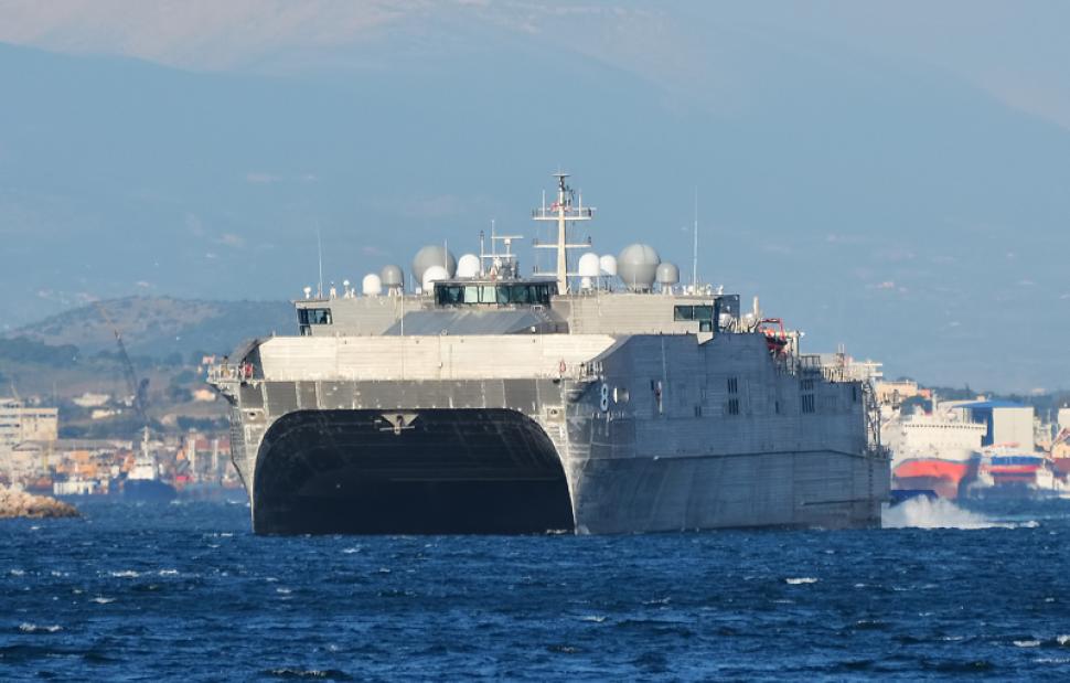 Κυρίως όμως ήρθε ως προπομπός των αμερικανικών δυνάμεων που αναμένονται σε λίγες ημέρες. Έχει «ξεφορτώσει», δύο λόχους Αμερικανούς στρατιώτες (ανάμεσα τους και στρατιωτικούς λιμενεργάτες, στελέχη υποδοχής και προώθησης υλικού) που ήδη έχουν στρατοπεδεύσει στο στρατόπεδο Κανδηλάπτη (κοντά στην Εγνατία), αλλά τώρα με την υπογραφή της ελληνοαμερικανικής συμφωνίας θα μεταφερθούν στο στρατόπεδο Γιαννούλη (που προβλέπεται στη συμφωνία).