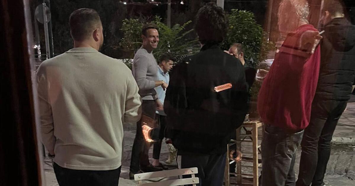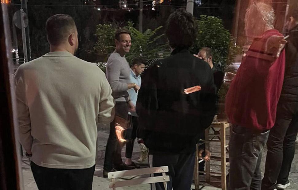 Ο κ. Κασσελάκης έδειχνε ευδιάθετος και συνομιλούσε με θαμώνες έξω από το Bar.