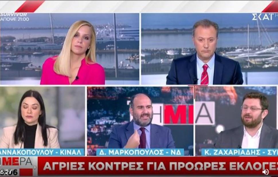 Ένταση επικράτησε μεταξύ των βουλευτών της Νέας Δημοκρατίας και του ΣΥΡΙΖΑ, Δημήτρη Μαρκόπουλου και Κώστα Ζαχαριάδη, κατά τη διάρκεια της πρωινής τηλεοπτικής εκπομπής του ΣΚΑΪ.