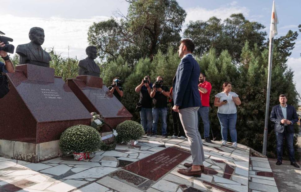 «Τιμούμε σήμερα δύο αγωνιστές του ΑΚΕΛ που εκτελέσθηκαν από Τουρκοκύπριους ακροδεξιούς επειδή αγωνίζονταν για την αδελφοσύνη Ελληνοκυπρίων και Τουρκοκυπρίων. Οι αγώνες τους μας εμπνέουν πάντα», τόνισε ο Στέφανος Κασσελάκης.