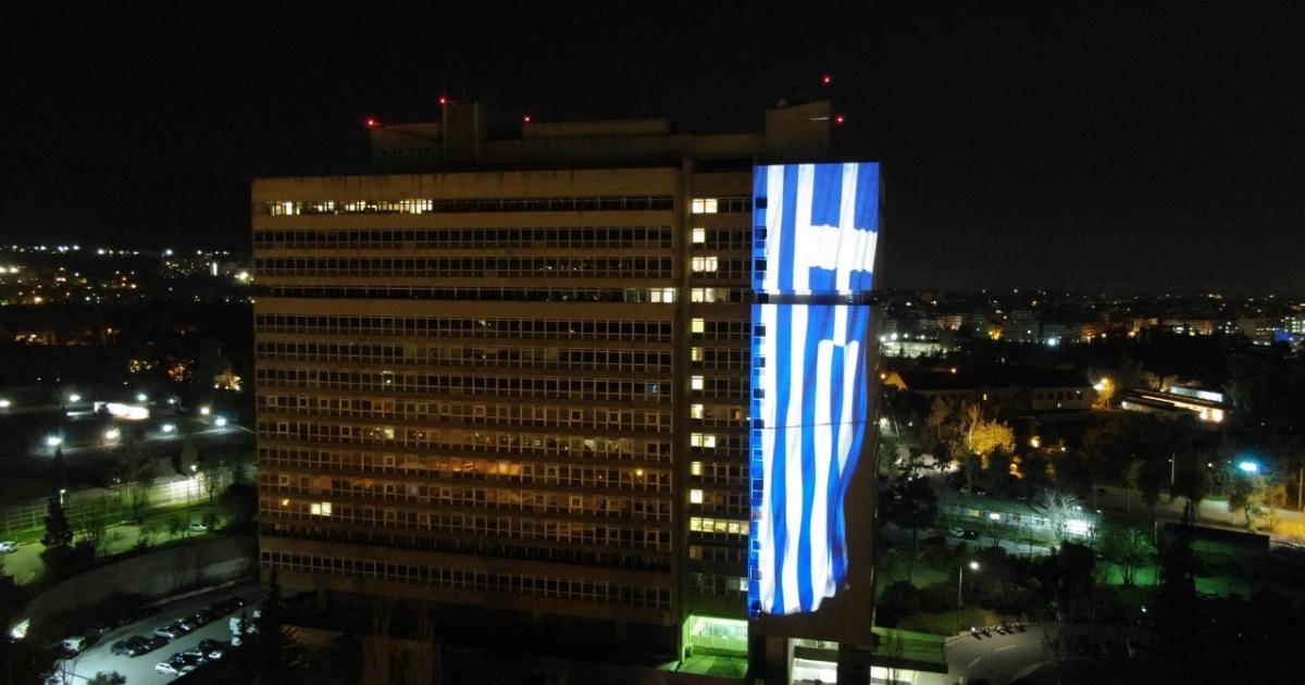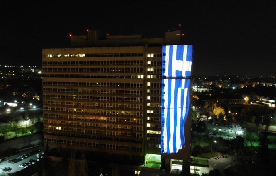 Την Εθνική Επέτειο της Επανάστασης του 1821 και τη μνήμη των ηρώων που αγωνίστηκαν για την ελευθερία τιμούν το υπουργείο Προστασίας του Πολίτη και η Ελληνική Αστυνομία (ΕΛ.ΑΣ). Από χθες το βράδυ φωτίζει το κτίριο της Κατεχάκη μια τεράστια γαλανόλευκη.