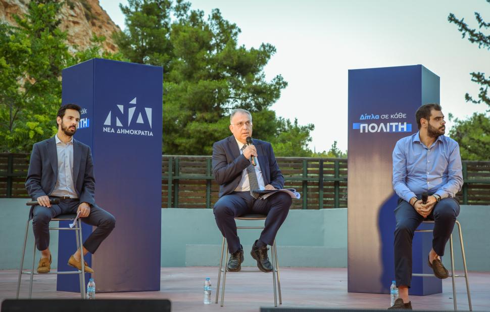 Η θεματική της συζήτησης ήταν «Δίπλα σε κάθε πολίτη: Ασφάλεια στις γειτονιές», με κεντρικούς ομιλητές τον υπουργό Προστασίας του Πολίτη Τάκη Θεοδωρικάκο και τον Γραμματέα της Πολιτικής Επιτροπής της Νέας Δημοκρατίας Παύλο Μαρινάκη.