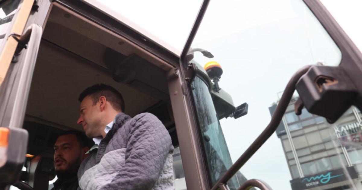 Ανέβηκε επίσης σε δύο τρακτέρ και συνομίλησε με αγρότες για τα προβλήματά τους.
