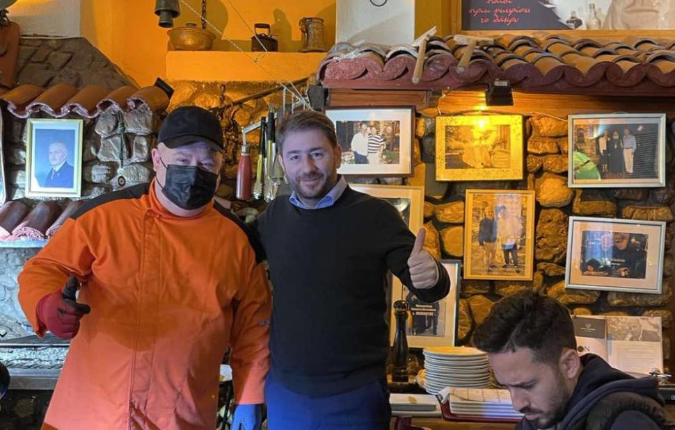 Στάση στην ταβέρνα του θρυλικού «Μαγκλάρα» έξω από την Καλαμπάκα έκανε ο Νίκος Ανδρουλάκης, κατά τη διάρκεια της περιοδείας του στη Θεσσαλία.