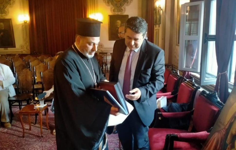 Ο Καθηγούμενος προσεφώνησε, επί παρουσία του Σεβασμιωτάτου Μητροπολίτου Σαράντα Εκκλησιών Ανδρέου, εκπροσωπούντος την Εφορεία της Σχολής, τους υψηλούς επισκέπτες αναφερόμενος στην ιστορία της Θεολογικής Σχολής της Χάλκης, καθώς και στις δυνατότητες συνεργασίας με τη Βουλή.