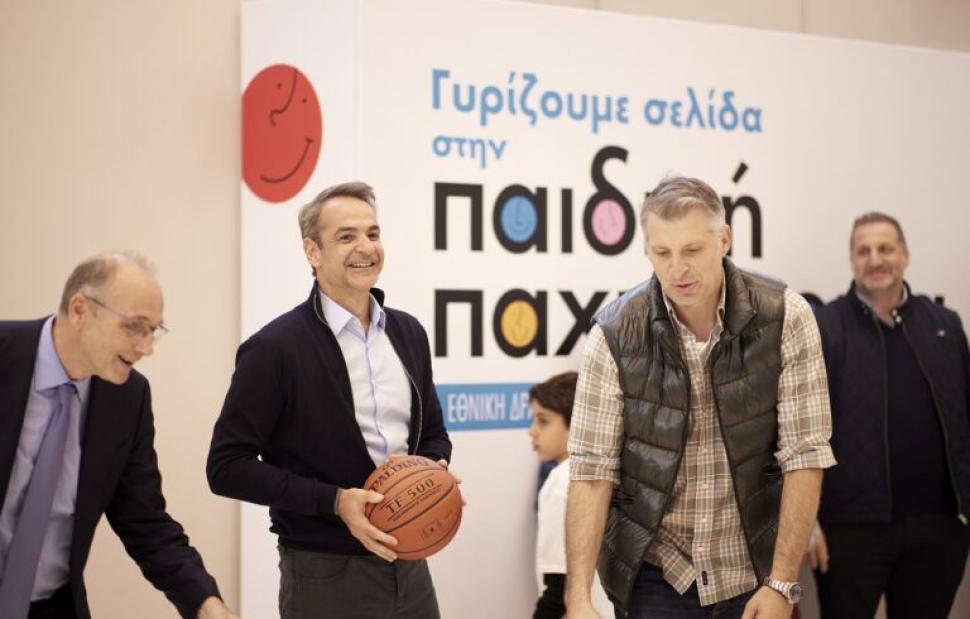 Ο Κυριάκος Μητσοτάκης παρακολούθησε, επίσης, αθλητικές δραστηριότητες για παιδιά σε ειδικά διαμορφωμένο χώρο στον εσωτερικό κήπο του Ζαππείου, είχε την ευκαιρία να συνομιλήσει με νεαρούς αθλητές και δοκίμασε σουτ μαζί με τον πρώην διεθνή μπασκετμπολίστα Θοδωρή Παπαλουκά.