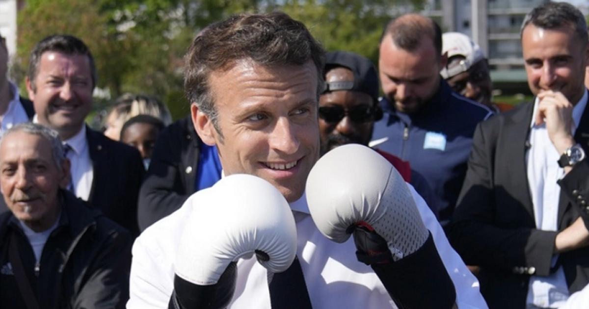 Ο Εμανουέλ Μακρόν φόρεσε γάντια πυγμαχίας, ενώ δίνει τις τελευταίες «μάχες» μέχρι την εκλογική αναμέτρηση της επόμενης Κυριακής.