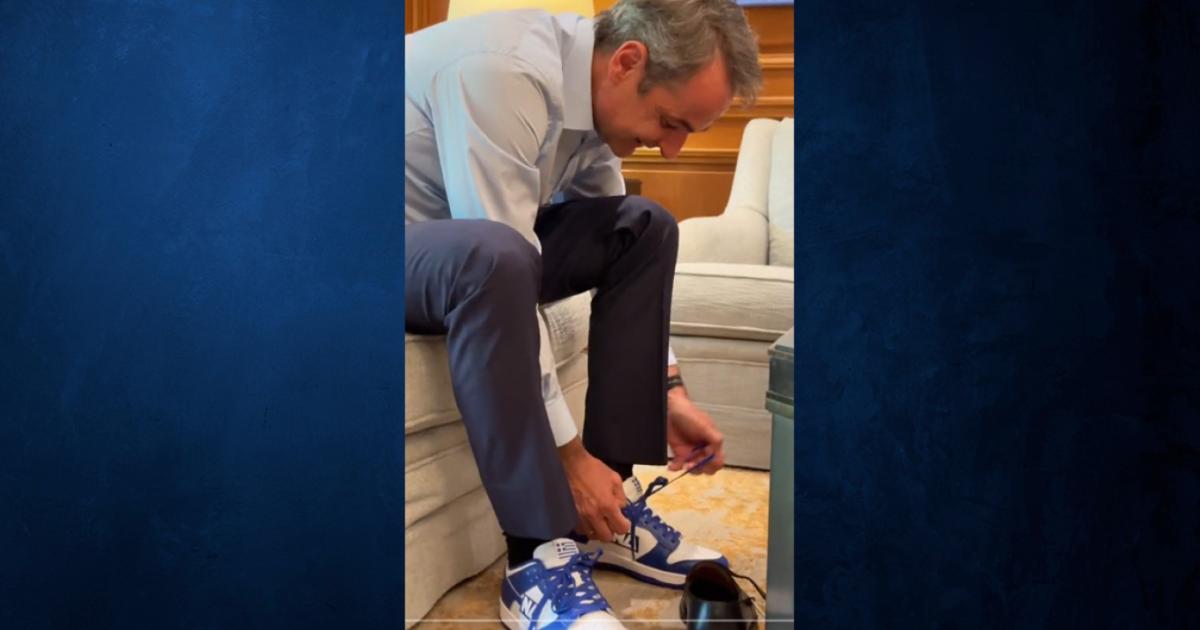 Ένα ζευγάρι παπούτσια «Νέα Δημοκρατία» απέκτησε ο Κυριάκος Μητσοτάκης. Ο Πρωθυπουργός έσπευσε να τα δοκιμάσει σε βίντεο που ανάρτησε στο TikTok.
