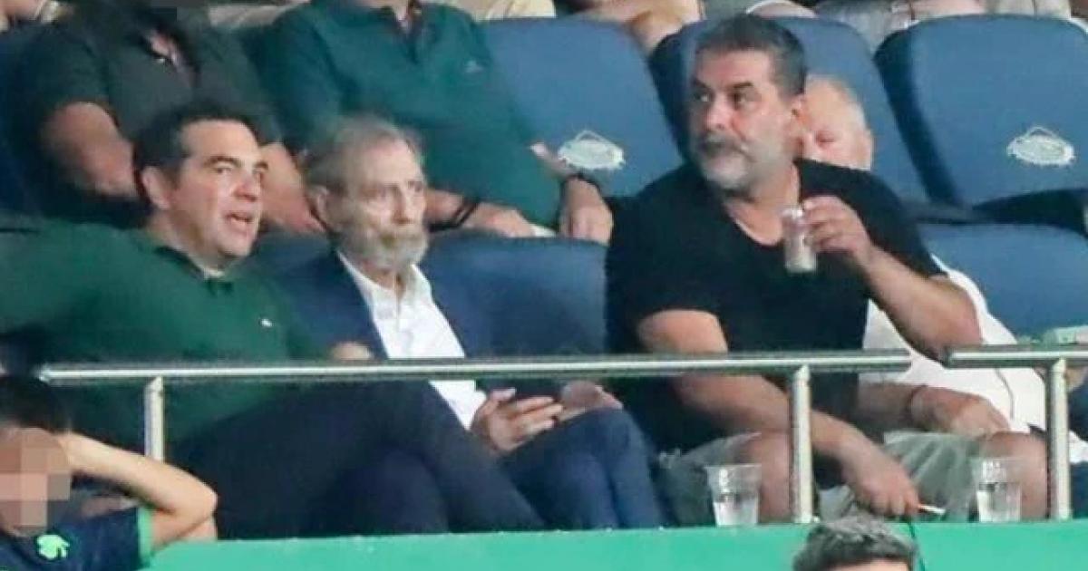 Όπως αποκαλύπτει και φωτογραφικό υλικό, ο πρώην πρόεδρος του ΣΥΡΙΖΑ, παρακολούθησε την ποδοσφαιρική αναμέτρηση, έχοντας δίπλα του τον Γιώργο Βαρδινογιάννη και τον Βασίλη Μπισμπίκη.