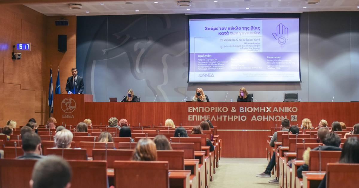 Ο πρόεδρος του ΕΒΕΑ, Γιάννης Μπρατάκος, δήλωσε κατά τη διάρκεια της τοποθέτησής του: «Η εκδήλωση που πραγματοποιείται σήμερα, κατά τη διάρκεια μιας πανδημίας που οδεύει προς το τέλος της, φαντάζει πιο επίκαιρη από ποτέ. Γιατί πέρα από τις δυσλειτουργίες που επέφερε ο κορωνοϊός στην οικονομική μας δραστηριότητα, οι νέες συνθήκες ζωής στις οποίες μας εξανάγκασε στις εποχές του περιορισμού, ανέδειξαν δυσάρεστες πτυχές της κοινωνικής μας πραγματικότητας. Ανέδειξαν, για παράδειγμα, ότι οι διακρίσεις μεταξύ των φύλων, είτε αυτές εκφράζονται ως σωματική βία, είτε ως ψυχολογική καταπίεση, είτε ως μισθολογικές ανισότητες, δεν έχουν εξαλειφθεί. Έχουν όμως πλέον αποκαλυφθεί».