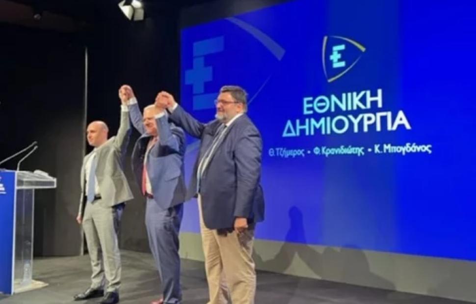 Επίσημα παρουσιάστηκε χθες στο Ίδρυμα Μείζονος Ελληνισμού η «Εθνική Δημιουργία», του νέου κόμματος των Κωνσταντίνου Μπογδάνου, Θάνου Τζήμερου και Φαήλου Κρανιδιώτη.