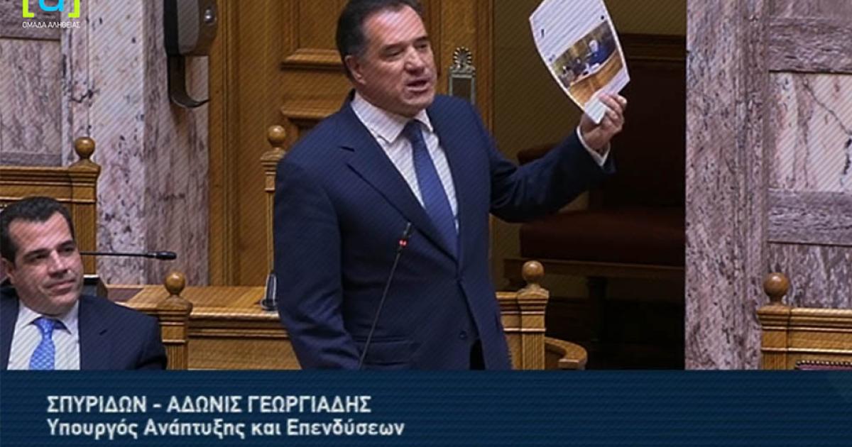 Ένα απολαυστικό απόσπασμα από τη χθεσινή παρέμβαση του Άδωνι Γεωργιάδη στη Βουλή, κατά τη διάρκεια της συζήτησης για την πρόταση μομφής, ανέβασε η "Ομάδα Αλήθειας".