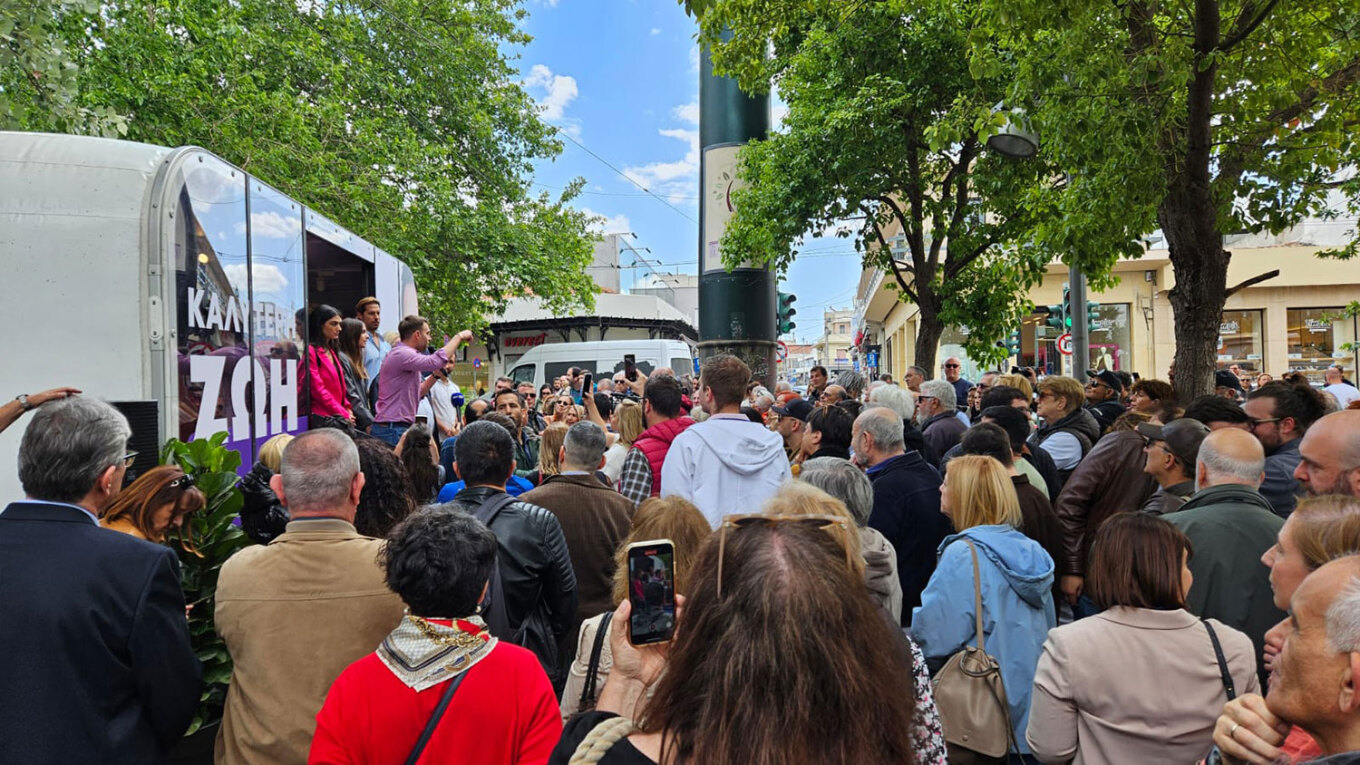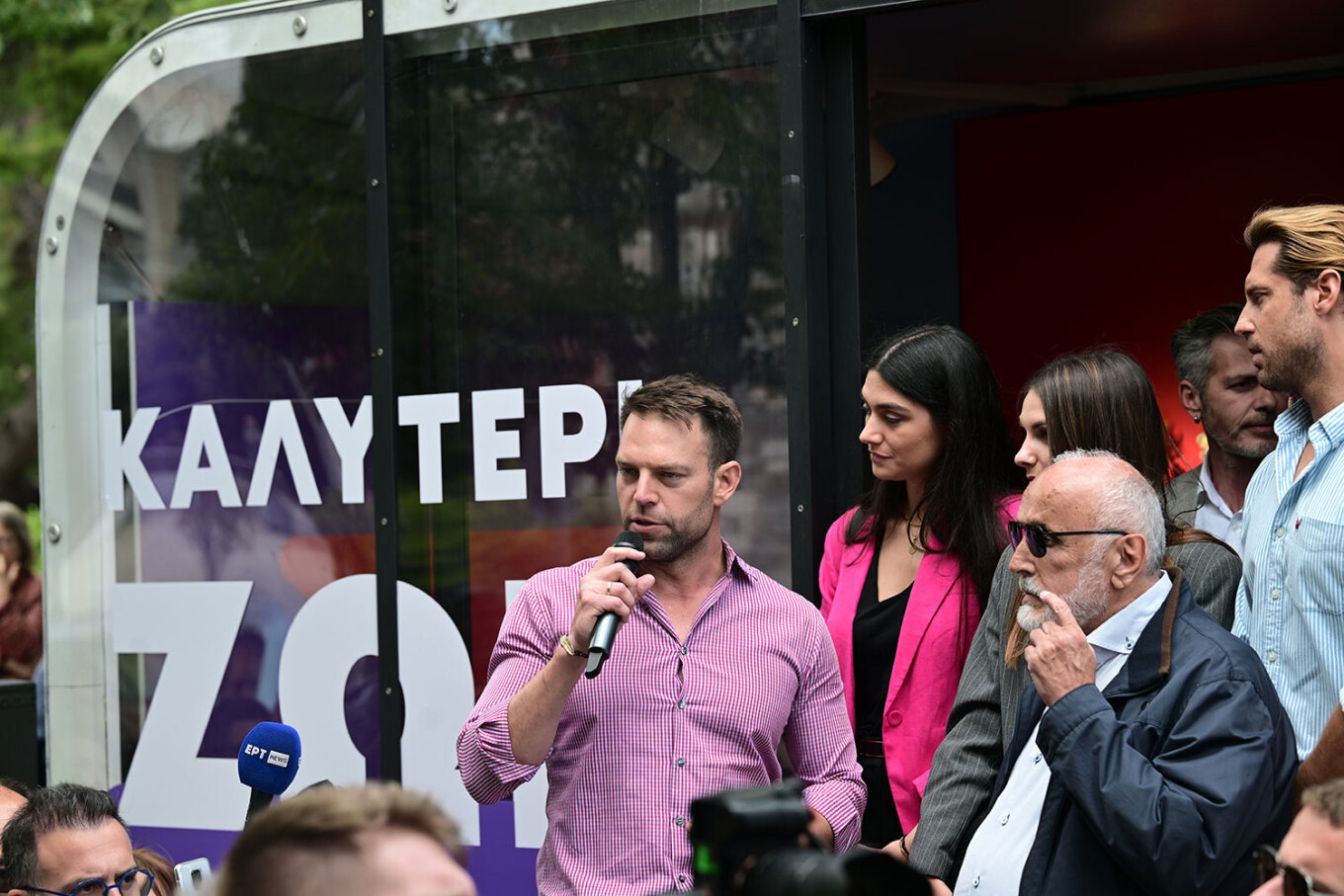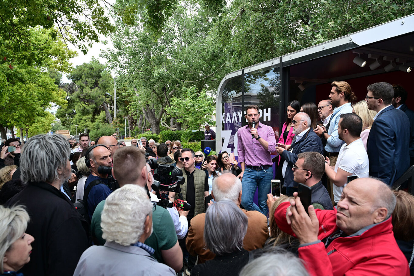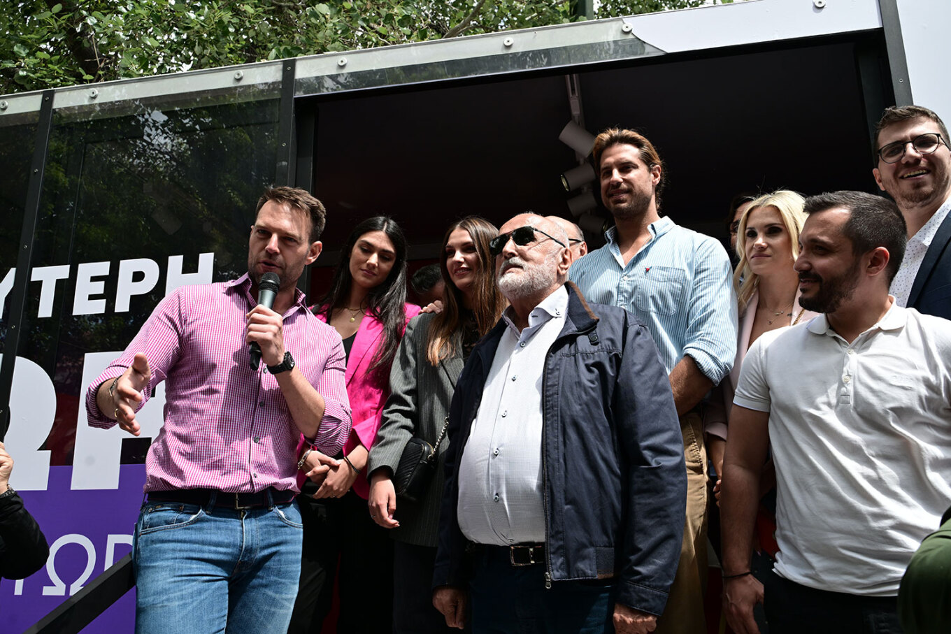 Το «κινητό στρατηγείο» που θα χρησιμοποιήσει ο Στέφανος Κασσελάκης στο πλαίσιο της περιοδείας του ενόψει των Ευρωεκλογών έκανε «πρεμιέρα» στο Χαλάνδρι.