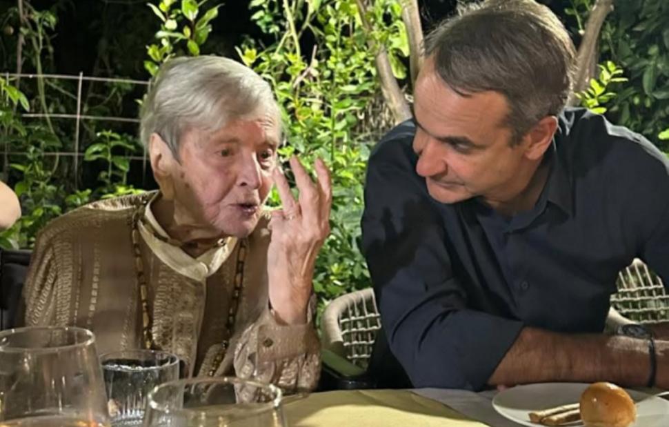 Σε φωτογραφία που δημοσιεύθηκε στα social media φαίνεται ο κ. Μητσοτάκης να συνομιλεί με την σπουδαία ιστορικό, ενώ σύμφωνα με την ανάρτηση ο πρωθυπουργός της ευχήθηκε συγκινημένος.