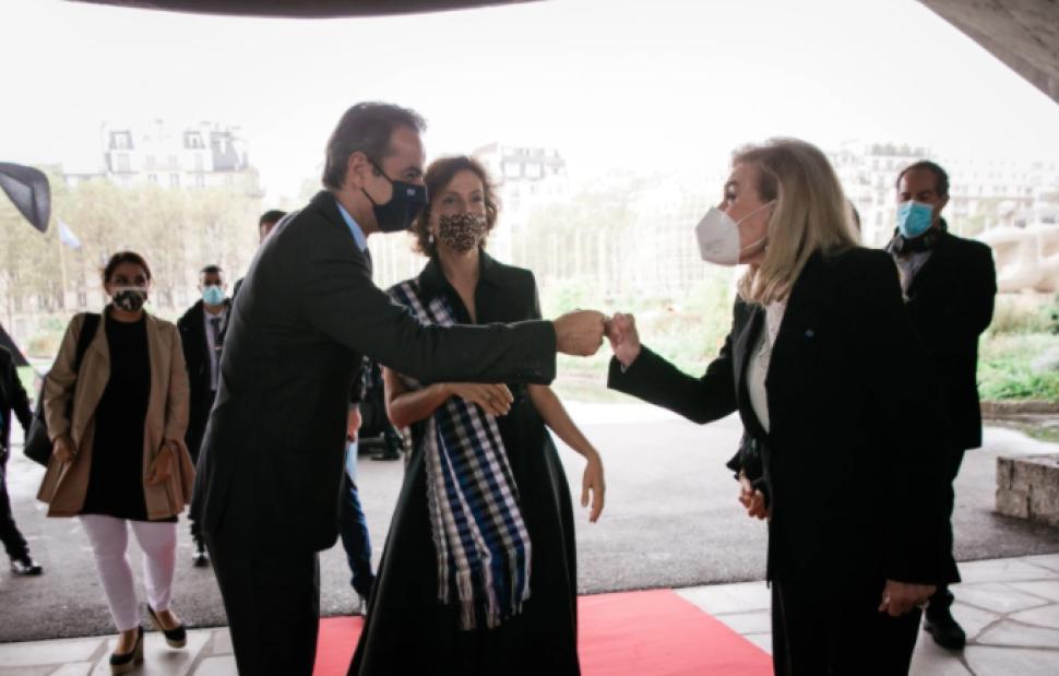 Τον Πρωθυπουργό υποδέχτηκε η Γενική Διευθύντρια της UNESCO Audrey Azoulay, η Πρέσβης Καλής Θελήσεως της UNESCO Μαριάννα Β. Βαρδινογιάννη και η Πρέσβης της Ελλάδας στην UNESCO Μαρία Διαμαντοπούλου.