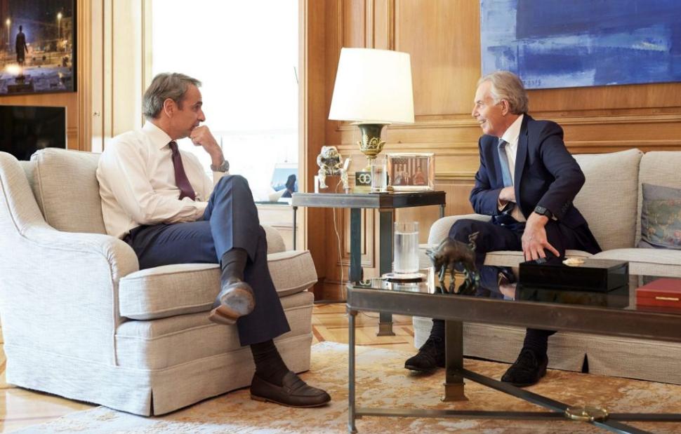 Ο πρωθυπουργός Κυριάκος Μητσοτάκης συναντήθηκε το απόγευμα στο Μέγαρο Μαξίμου με τον πρώην πρωθυπουργό του Βρετανίας Τόνι Μπλερ.