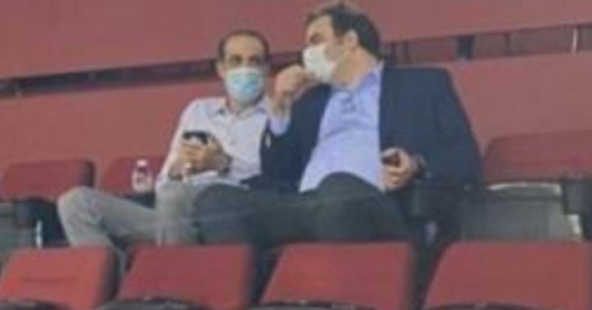 Ο φωτογραφικός φακός του parapolitika.gr, τους εντόπισε να κάθονται στις κερκίδες φορώντας τις μάσκες τους, όπως προβλέπουν τα υγειονομικά πρωτόκολλα.