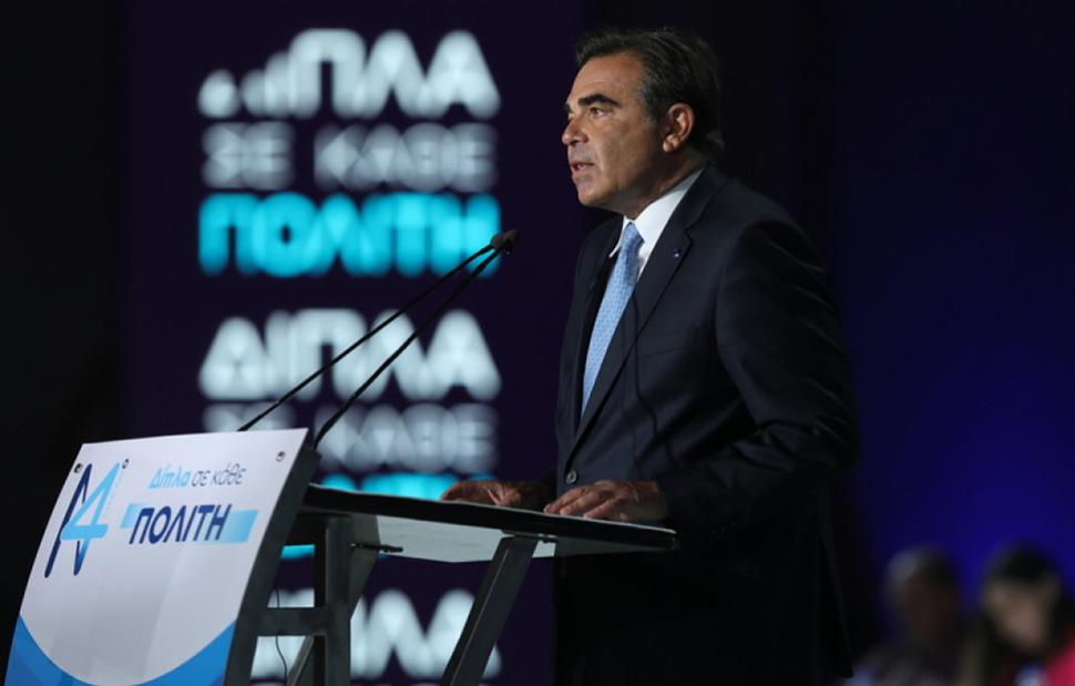 Ο αντιπρόεδρος της Ευρωπαϊκής Επιτροπής Μαργαρίτης Σχοινάς ανεβαίνοντας στο βήμα του συνεδρίου της ΝΔ έκανε αναφορά στο προηγούμενο συνέδριο την Κυριακή 1η Δεκεμβρίου του 2019.