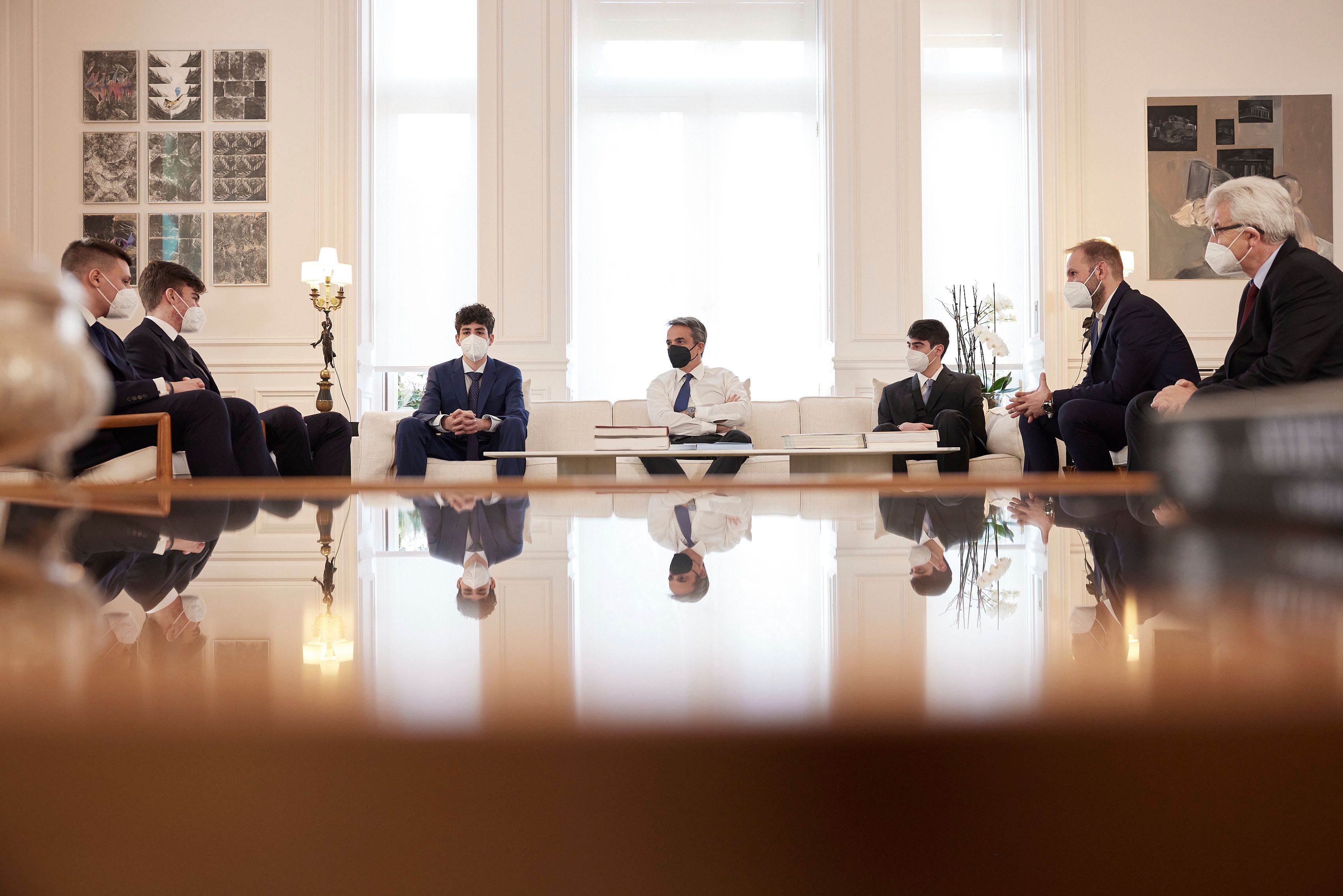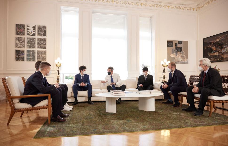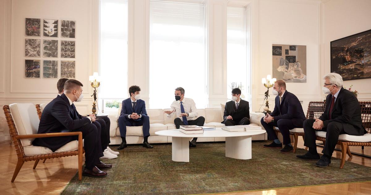 Τη μαθητική ομάδα Minders, η οποία κατέκτησε την πέμπτη θέση στην Ολυμπιάδα Εκπαιδευτικής Ρομποτικής 2021, εκπροσωπώντας την Ελλάδα, υποδέχτηκε στο Μέγαρο Μαξίμου ο Κυριάκος Μητσοτάκης.