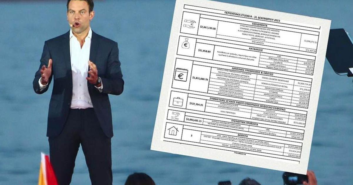 Δεύτερον, δημοσιοποίησε την περιουσιακή του κατάσταση μέχρι το τέλος του 2023, χωρίς να περιλαμβάνεται η πολυτελής κατοικία που αγόρασε στο Κολωνάκι, αλλά για όλα τα υπόλοιπα που έχει αποκτήσει, παρέλειψε να προσκομίσει τα δικαιολογητικά που αναφέρονται στον τρόπο απόκτησης του περιουσιακού στοιχείου. Δηλαδή, το τίμημα αγοράς, τους αριθμούς συμβολαίων μεταβίβασης, τις δηλώσεις έναρξης λειτουργίας των επιχειρήσεων, τους αριθμούς κυκλοφορίας των αυτοκινήτων κλπ. Η εκδοχή του ότι αναμένει τα στοιχεία από την Αμερικανική Φορολογική Αστυνομία (IRS) είναι τουλάχιστον κωμική, καθώς τα δάνεια, οι καταθέσεις, τα συμβόλαια και όλα τα άλλα απαραίτητα έγγραφα, εκτός από τις αρμόδιες αρχές, βρίσκονται πρωτίστως στην οικία κάθε φορολογούμενου.