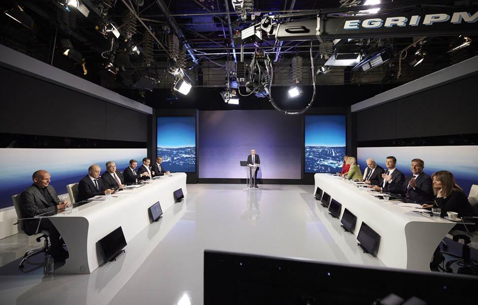 Το drone πετούσε πάνω από το ραδιομέγαρο, ενώ 26 κάμερες μέσα και έξω από το κτίριο, ακολουθούσαν τους πολιτικούς αρχηγούς.