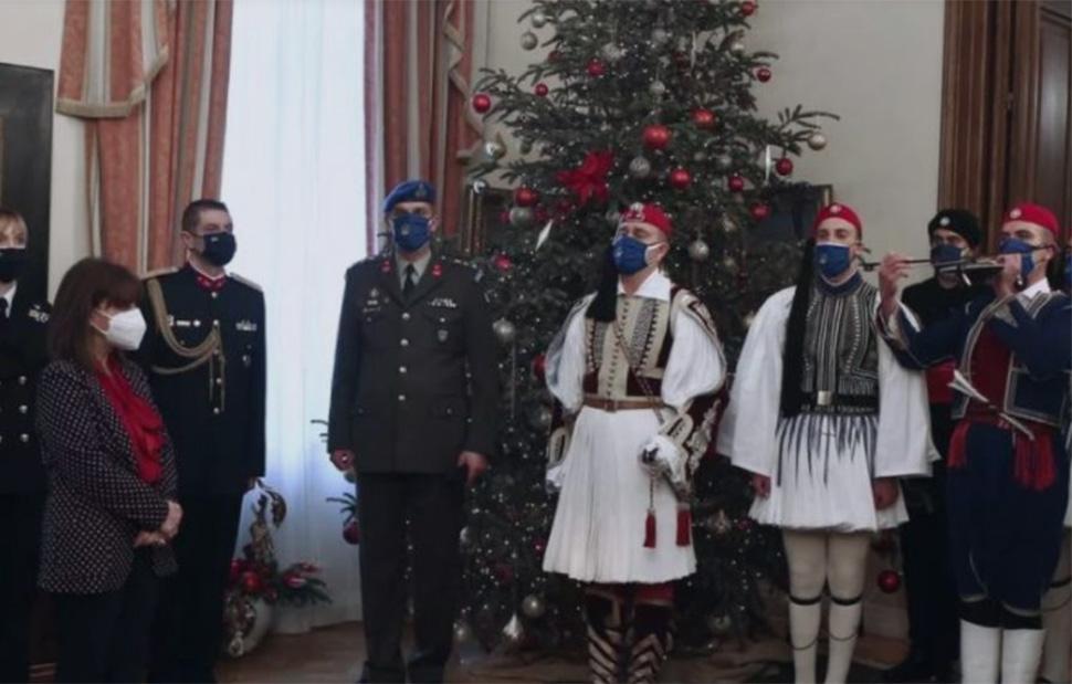 Η Μπάντα των Ενόπλων Δυνάμεων και η Προεδρική Φρουρά έψαλαν τα κάλαντα της Πρωτοχρονιάς στην Πρόεδρο της Δημοκρατίας Κατερίνα Σακελλαροπούλου.