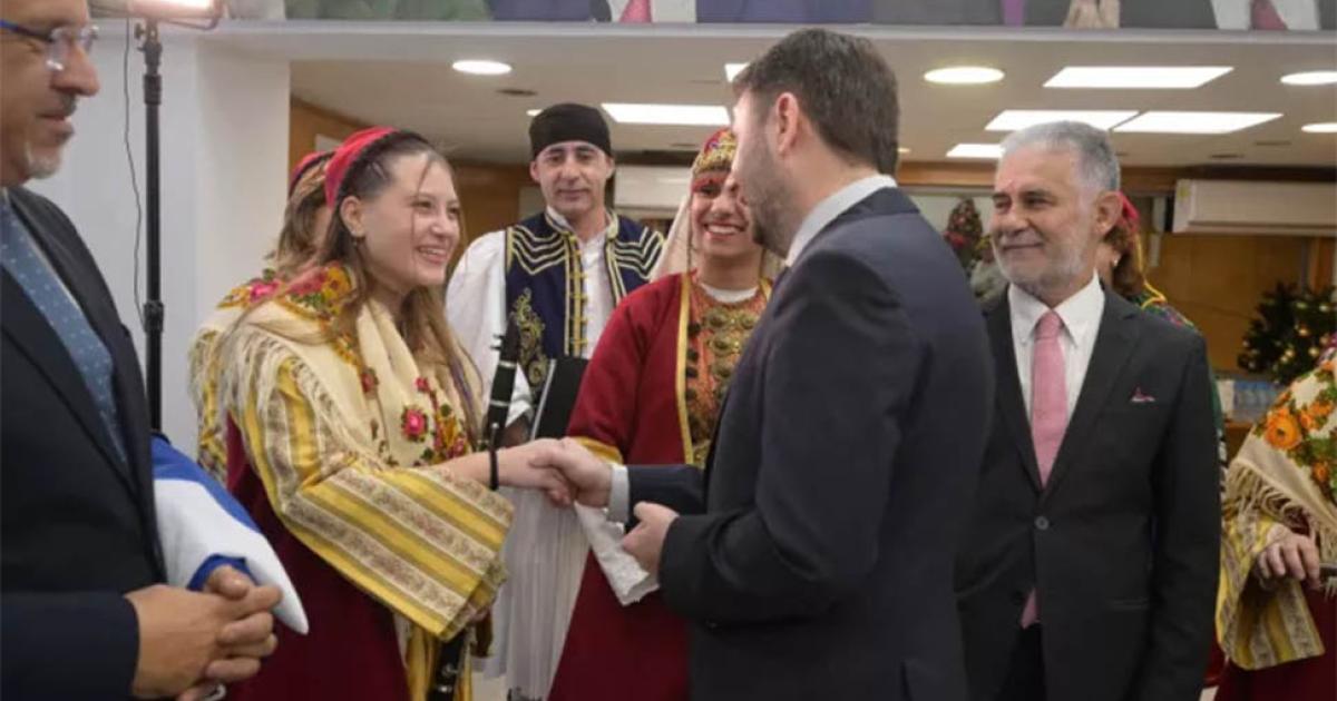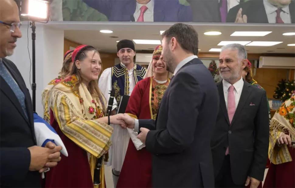 Ο κ. Ανδρουλάκης αντάλλαξε ευχές με τους χορευτές του συλλόγου και επαίνεσε την πρωτοβουλία τους.