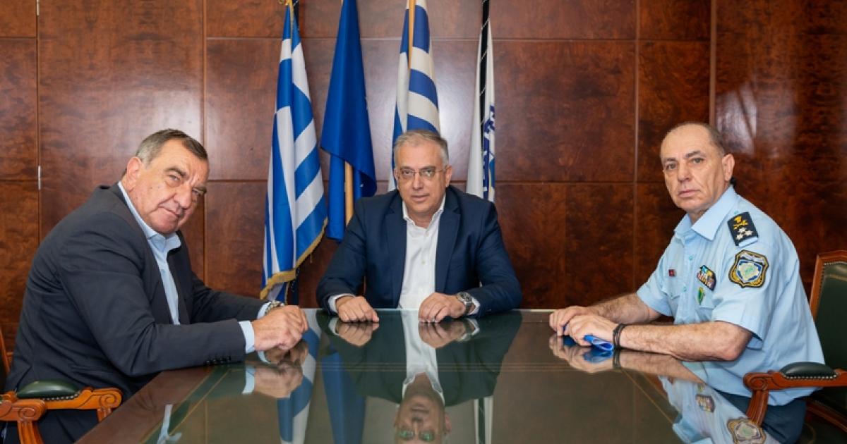 Ο Υπουργός Προστασίας του Πολίτη Τάκης Θεοδωρικάκος συναντήθηκε σήμερα με τον Δήμαρχο Θήρας – Σαντορίνης Αντώνη Σιγάλα. Παρουσία του αρχηγού της Ελληνικής Αστυνομίας Αντιστράτηγου Κωνσταντίνου Σκούμα, συζήτησαν για θέματα ασφάλειας στο πανέμορφο νησί των Κυκλάδων, το οποίο φέτος παρουσιάζει ιδιαίτερα αυξημένη τουριστική κίνηση.