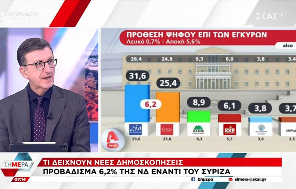 Ο Άρης Πορτοσάλτε σχολιάζει τις νέες δημοσκοπήσεις που δίνουν προβάδισμα 6,2% της ΝΔ έναντι του ΣΥΡΙΖΑ.