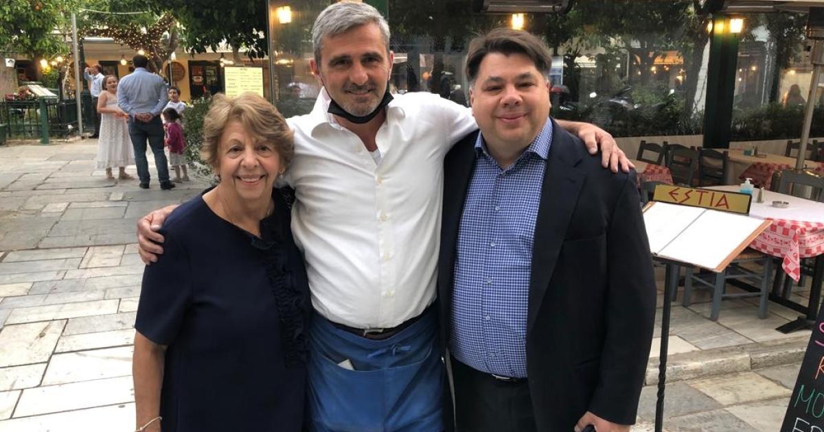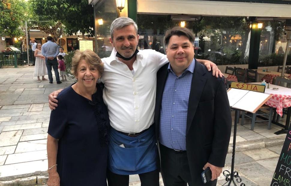 Great to run into a relative, Pericles, από το χωριό μου τον Πλάτανο, on my first evening out in Plaka! So wonderful to be back! Here we are with my mom Eleni. #Platanos pic.twitter.com/1GXc2fmH9Z