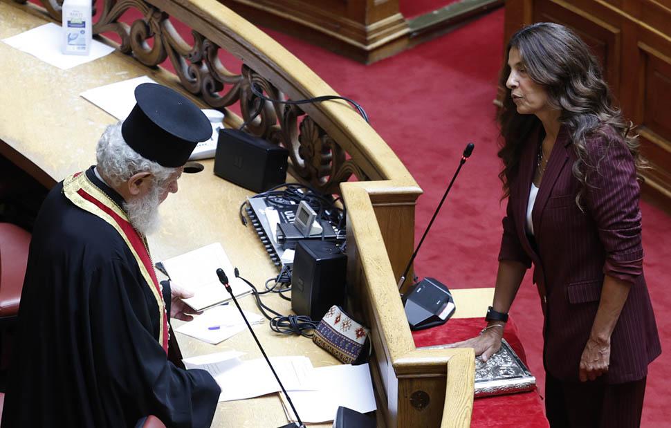 Η κυρία Τσαπανίδου ορκίστηκε με θρησκευτικό όρκο.