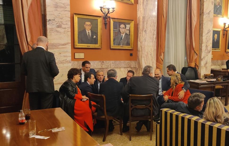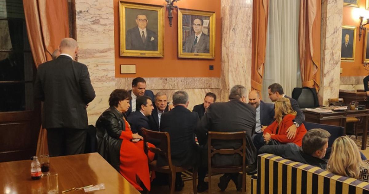 «Πηγαδάκι» στο εντευκτήριο της Βουλής δημιουργήθηκε μόλις εμφανίστηκε ο Πρώην Πρωθυπουργός, Αντώνης Σαμαράς, μαζί με την υπουργό Εσωτερικών, Νίκη Κεραμέως και την υπουργό Κοινωνικής Συνοχής και Οικογένειας, Σοφία Ζαχαράκη.
