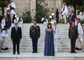 Η Πρόεδρος της Δημοκρατίας Κατερίνα Σακελλαροπούλου υποδέχθηκε όπως κάθε χρόνο, τους πολιτικούς αρχηγούς, μέλη της κυβέρνησης και της Βουλής, τους αρχ...